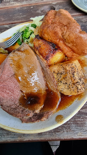 First the good points - This is a beautiful historic pub with a charming terraced sun trap garden that provides lovely views across the chimneys of the medieval town centre. I have been once before with family on a weeknight and the food was pleasant and the pub was stunning inside with low beams and fairy lights creating a cosy atmosphere. Now for the review of today's experience... We booked in online and on arrival we weren't clear where we should ask about our table (there are two entry doors) but as it was a beautiful day we picked a space in the garden. The scan here to order qr code didn't work so I went back down to order and gave our table number. Our roasts came out after about 20mins and the waitress initially put it on the neighbouring table until we stepped in and said it was ours. The young lad on the bar had apparently taken the table number down wrong. We were told our cauli cheese would be 5-10mins behind the mains, we weren't asked if we wanted sauces and we had to ask for cutlery. As our dinner was getting cold whilst we were waiting and I can appreciate that they're busy, I went back down to the bar to get these bits myself. The food itself was presented nicely, but every single part of it tasted bland. The only thing that had been seasoned was the extremely peppery potatoes. A little bit of salt during cooking would have made the world of difference to the potatoes, greens, mash and yorkies. The cauli cheese was mushy so I assume frozen, and had no real flavour, though the crumb they'd put on top was nice. My beef was medium at best but very dry, and my partner said the same for the pork. The tasty gravy was the saving grace for the dishes, though this is the first time we've left roast on the plate. Perhaps we've just been spoilt by the other Butcombe chain pubs (we are big fans of the rising sun and Ring O Bells) but we came away feeling very underwhelmed, especially given the price was the upper end of the scale. We didn't bring it up with the pub because nobody came to check how things were, we had paid at ordering and there was a queue for the bar when we had finished. If they'd offered us desserts I'd have declined on the basis of the quality...