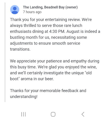 Read moreHad a week long family holiday here on the Northumbrian coast and stayed in Beadnell. It’s been fab. We arrived and on first day came to the beach and stumbled upon The Landing across from the main car park and beach entrance. Thought we’d check out the menu for dinner options one evening. Some nice options were on the menu for adults and maybe older children but nothing really for the young kids. This was a shame as I think they’re missing out from some early evening custom by not having some simple but local options for the young child. You could get some families eating from 5pm to 7pm if they offered something for them. Anyway we did decide to have breakfast here on our last day and our daughter was excited for the pancakes. We order full English breakfasts. They took the order and then unfortunately came back a few minutes to say they have no pancakes. Honestly…I was a little miffed simply because I don’t see how hard it is to make a batter mix. I mean I’m not a cook and yet I know how to do it for when it’s Shrove Tuesday! Anyway she ordered a full breakfast too. When the breakfasts came they were good. Eggs lovely, nice sausages, super black pudding, so it was definitely a good breakfast! We also has a couple of take away hot drinks over the week we were here and they were also good. The hot chocolate is a good choice if you want a pick me up towards the end of your day as you come off the beach or from the activities on offer from...
