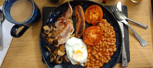 We also took full advantage of the pub downstairs. The building itself is beautiful and the pub is no exception. We enjoyed a lunch our first day, went down in the evening for a light dinner, and paid for breakfast one day. Whoever checks you in will tell you: breakfast is not included, it's an extra charge. That was fine with us so we paid for it one morning. I believe Molly was in the kitchen that morning? We got a full English breakfast - black pudding is an option if you want it! - and it was really delicious. We went down in the evening a couple nights to grab a pint. It was a very relaxed atmosphere. The neighborhood is about a 15 minute walk to the city center, which is quite easy, and there's also a bus stop about a one minute walk from the pub. There is a Sainsbury grocery store about a 5 minute walk away as well as plenty of other restaurants. One of the folks working the pub told us about an entrance to the river walk, so we took a stroll down there, too.