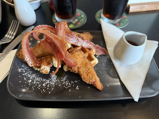 Staying in Whitby and had our fill of chips, we looked around online and found this place, the 5 stars were well deserved, we were looked after from being merged outside in terrible weather conditions, and we had the bar almost to ourselves, with a choice of football to watch. Chicken and bacon waffles with deep fried brie, followed by cherry meringue pie -...