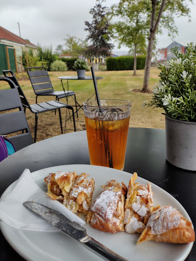 The café itself is small but incredibly charming, decorated with thoughtful touches that create a cozy, inviting atmosphere. Despite the rain, which meant we couldn't enjoy the outdoor seating, the indoor setting was cozy and comfortable, perfect for relaxing with a warm drink and good company. The outdoor seating area looked lovely, though, and I can only imagine how wonderful it would be in the warmer months to sit outside, enjoying the ambiance and perhaps some sunshine.