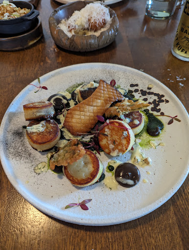 Eventually at around 3.15 I stopped our waitress and asked if there had been a delay. Another awkward moment as she didn't apologise but ran off into the kitchen. Something was clearly wrong but no explanation or apology were provided. At this point I was fuming. I got up to see if I could speak to someone who could offer an explanation. I saw three of the wait staff engaged in hushed conversation clearly about our order... I sat back down. At this point the restaurant manager Josh Bond, came over and offered us a rushed explanation, something around the fact that he would check what was happening and gave us a plate of cheese doughnuts, which we didn't order, and didn't fancy eating because it might spoil our lunch. There wasn't even a moment for me to express my annoyance. We waited for another 10 minutes without anyone saying a word to us.