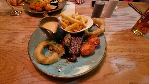 Read moreNot the best dining experience tbh. The young lady wasn't as friendly when placing my food order and the food itself is overpriced for what you get. The steak dish was already nearly £20 but in faint writing it says a sauce would be almost £3 more. Surely it should be included? The peppercorn sauce was so thin and the chips came on a ceramic bowl? To give the impression of a fuller plate, I don't think it's neccessary. Generally, this place is nice to have a few drinks, it's spacious and mostly well kept. They have a nice outside drinking area at the back but I feel they could offer better quality in their dishes. The other dish we ordered was the Scampi, could have done better with salad/presentation for the money you pay for these dishes. I would suggest all staff treat all patrons with in welcoming & friendly manner and make some adjustments to the presentation/ quality/ quantity of some dishes. Afterall, this is not a student pub with...