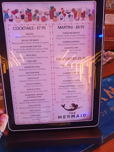 My husband and I were on a Devon break for a few days and walked by The Mermaid. I was drawn in by the gorgeous decor! Jelly fish light shades, glass panels filled with bubbling water that was lit up with colour changing lights and other sets of lights. It was really striking. The man who served me at the bar was really helpful and friendly. He put one of the light displays on for me to watch. We sat on the sofas at the front where the huge doors were open so we got lots of fresh air and a great view of Brixham harbour. We really enjoyed our cool drinks and the atmosphere and will return when we next...