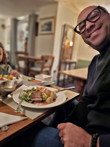 5* simply because I can’t leave 10! Dropped in here in desperation today ( Easter Saturday) after travelling around to a couple of places and not being able to get a table. Thought we were off to the Chinese in Pickering when we stopped her and asked if dogs were allowed in? Yes we were told and then did they have a table for 2? Despite being full and tables reserved they found us one, we had to wait a bit to have our order taken but they did get us drinks straight away while we waited for them to deal with the party of 8 that came in just before us. When they did take out order I went for the sirloin steak and my wife the lasagna. This was finished with apple crumble / custard and hot choc fudge cake / custard. We can honestly say it all was cooked to perfection. The steak I haven’t had so good in a long time ( even when I’ve cooked it) and the wife’s lasagna was spot on too. Puddings tasted perfect too. Lovely, small, but reasonable quite pub considering it was full. Staff were outstanding, friendly, helpful and polite apologising for our wait which considering we dropped in on the off chance was our fault not theirs. The landlord was great. Joking and making us feel at home and actually wanted. As others have said, every pub needs a landlord like this. Our only regret was it was our last night that we popped in even though over the years we’ve driven past it so many times. If you want a well cooked meal at a nice quiet county pub with good service and polite staff you don’t need to look any further. We will definitely be back here when in the area. Thank you so much to...