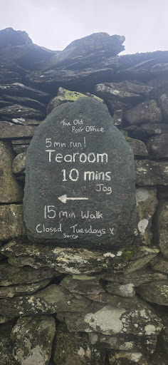Read moreWe were absolutely drenched to our undies coming down off the hill via Nanny Lane when we came across a piece of slate saying tea-rooms, 15 minutes and I jokingly said, well someone hiked all the way up here to tell us they've got the kettle on! The rain continued to pour and I wondered if it was too much to hope for that the cafe would be open, that it would be nice, that it would have good coffee and it would have cake! As we approached the old post-office I said, I hope they let us in and I hope they have a mop!!! Well, they did let us in, we dripped puddles onto their floor, they said never mind as they mopped them away (with 2 mops); it was nice, they lit the fire as I wrapped my hands around a wonderful cup of *good coffee, what's more they did have cake and a hot meat and tattie pie. What a wonderful treasure; so if ever you are in the area and you see a piece of slate saying cafe 15 minutes, jog or better still run so that you get...