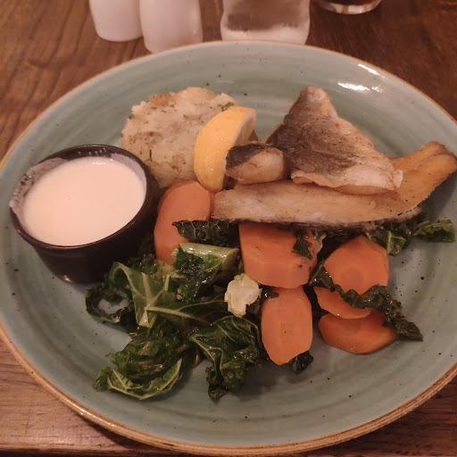 Person 2 had the lamb, with boiled potatoes and some veg. It was £16.50. Yes, that is a lot. And it had a lump of fat running along the side that really should have been trimmed or removed. I think lamb should be cooked slowly to allow the fat to render, or cooked quickly, but this was somewhere in between and the result was pretty shoddy.