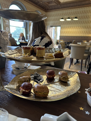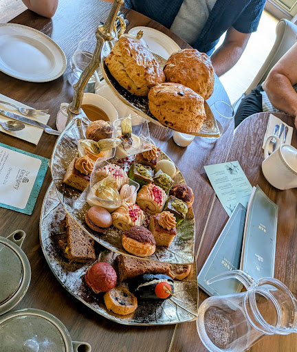 We went for a work away day and had been looking forward to it for months. The table arrangement was nice so we could sit and talk to everyone and we were in the joining room of the Hibiscus which was much quieter than the main café area. The seats were comfortable. I liked the scones as they were still warm when I ate mine. There was a nice selection of cakes and they gave people boxes for whoever wanted to leftovers home. There were a lot leftover. The endless refill of tea was promised but since we were all given large teapots none of us needed a refill. We were there for two hours. We have had afternoon tea at another nearby place on two occasions but this was the first time here. The sandwiches and scones were full sized. I hugely disliked the black sandwiches and given how awful they were I'm really surprised to see them in photos from reviewers as much as a year ago. When I picked up the sandwich a hard lump of it fell off in my hand. I am not sure what the texture is supposed to be like, but it was incredibly dry and too rock hard. The tiny bit of filling did nothing to moisten it. Does anyone think black food is appetising? The second sandwich seemed to be made with thick slices of ginger cake (that's what it tasted like), also very dry. And barely any filling. The third sandwich was an egg mayo on 'normal bread' and we commented on how we'd have just preferred to have them all as normal sandwiches since then at least we'd be able to eat them. There is no point trying to be pretentious if you can't pull it off. They could have been cut smaller so if we would've realised they were disgusting we didn't need to pick up another one. Whereas I had to dump a partially eaten one back on the tray so I could still use my tiny side plate for anything else I might want to try. I had the vegetarian option and had to share the platter with two other people. The meat eaters had something described as a sausage roll which they all seemed to like. Although there were plenty of positives. I hope that if we do afternoon tea again we will go to the...