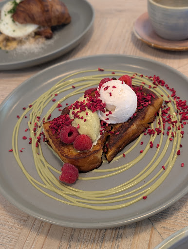 Whilst we were consuming our 'brunch mains', sat between us was this beautifully presented, bread and butter french toast, longing for us to devour it.