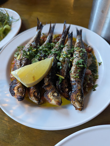 The food was really very special. Their use of local seasonal was exceptional and we delighted especially in their small plates. Lots of these were mainly exquisite treatment of vegetables. A highlight being the delicious salted cucumber dish. We also enjoyed the most delicious heritage tomatoes with anchovies, garlic and olive oil. I'm sure much more was on this delicious plate but it was eaten so fast we didn't really note. We enjoyed the beautifully cooked sardines which made me feel like I was in Spain.