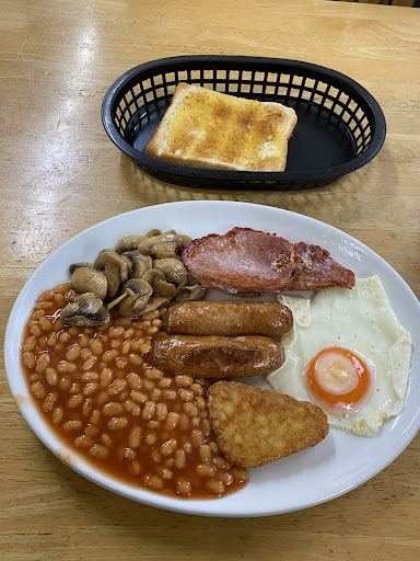 Read moreAfter looking at reviews for this place we were looking forward to some home cooking and sumptuous breakfast fare. Alas it was not to be. The cafe was clean and moderately busy, the staff attentive and pleasant. Seemingly though the JJ's wholesale breakfast was all deep fried with the exception of the eggs, toast and beans. You could visit any turkish/kurdish high street café for the same fare. Cheap sausage, undercooked eggs, fry-dehydrated hash browns heavy with grease and bacon piled up in various stages of preparedness. The real giveaway was the selection of Harrisons sauces fresh from JJ's wholesale . Despite my best efforts could not endure any more and left £10 poorer and 20 years more depressed. If you like a cheap deep fried breakfast in a nice atmosphere then this is the place for you. If you like real sausages, and crispy fried bacon then...