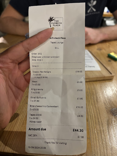 Read moreThe place is a bit of a mix. It is a Tapas bar with a pool table and the tables and chairs are a bit of a hotchpotch. We were two couples and had a mix of bench seats and plastic chairs. The tables were not compatible and we had to use beer mats to level the tables. There is no wine list and the servers have to explain the wine without any description to self discern. The tapas was good except that the chorizo sausage was extremely poor and would not achieve a sniff of a genuine Spanish chorizo sausage - so they should seek another supplier in our opinion. overall, it was reasonably priced and the chef was doing her best. It was difficult to split the bill - a lack of maths on the server but calling the manager meant it was rounded up and a £1 difference rather than 1p. They didn’t accept my simple mental arithmetic !! The mens toilet was not clean and considering that this has only recently opened it is something that needs attention. Anyway, it’s good to have in Swanage and will give it another go...