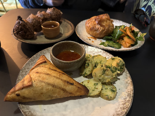 Staff is friendly. Food tastes average, Indian spices. Tap water has no extra charges. However, Portions are generally small. Felt overpriced. Eg. Meal price for a samosa we ordered (which is £2.5 pounds on its own) was £8.5 with just addition of 1 side salad portion. Why?