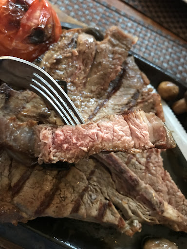 Read moreDisappointing visit with family. Initially very accommodating, relocating us to enable us to have a table our dog could join us at. Sadly went downhill from there. Ordered 2 T-Bone steaks rare. They came medium at best, more like Med- well done. No blood at all and a tiny bit of pink. Picture below. We sent them back as they weren’t cheap only to be rudely told we were wrong and the chef said they are rare. They had none left so what did we want. The attitude left us pretty annoyed. We sent one back and ate the other. The other meals were OK. Sea Bass was on the small size for the price. Roast was an excellent size with loads of food for the price but tough over cooked beef. Lovely cauliflower cheese. Kids meals were all good but expensive. £7-8 with no drink or pudding included. Almost as much as an adult.