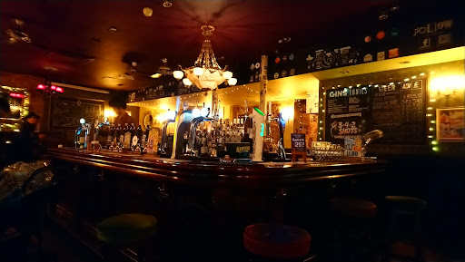 Retro-look pub with a polished wooden bar, a brick hearth with big-screen sport TV and local beers.
