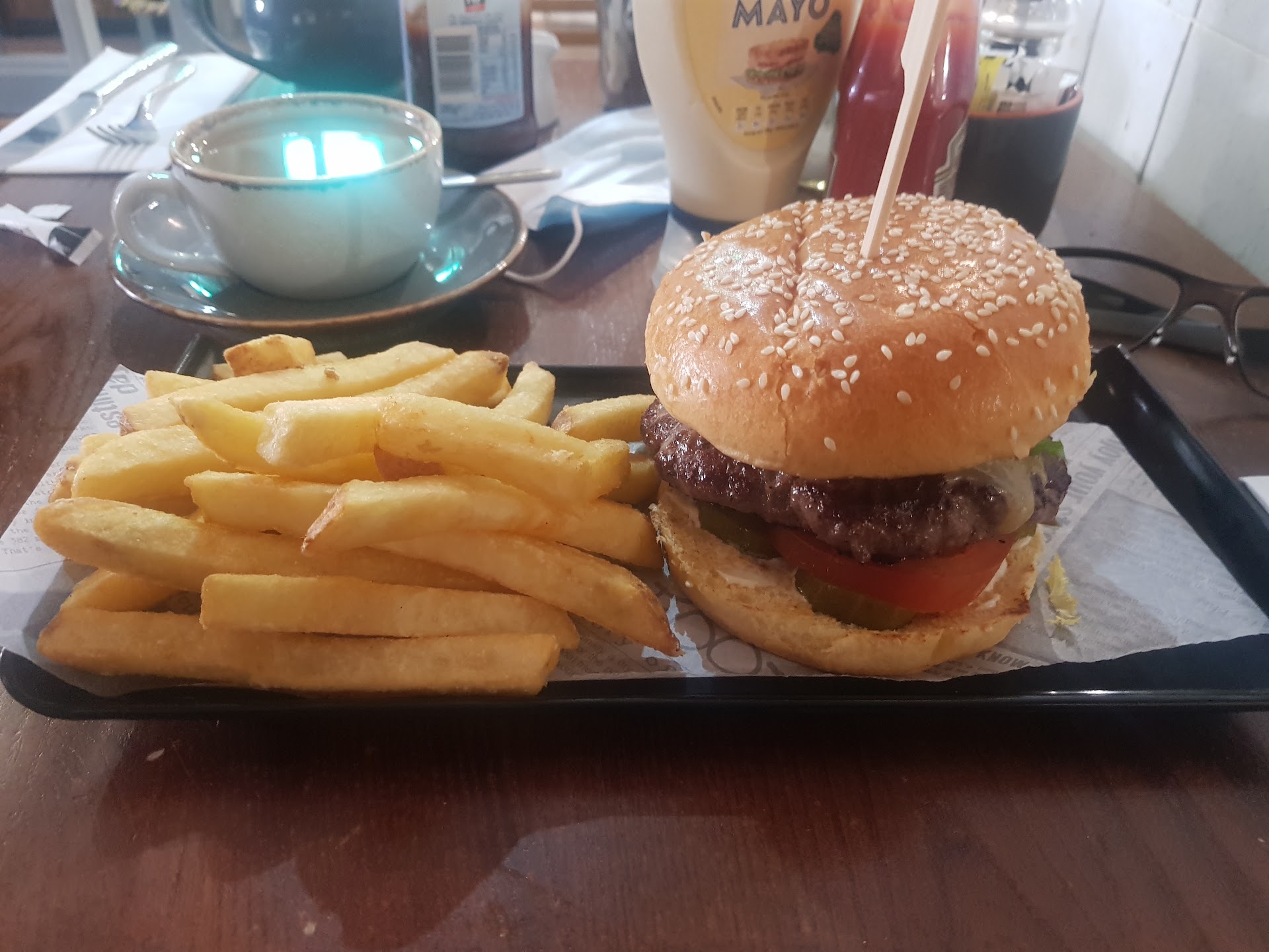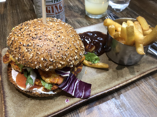 We watched several tables, that arrived after us, receive their food. We had only ordered a burger and halloumi fajitas, with no special requests or changes. After 30-40 mins waiting we managed to attract the attention of our waiter, which was a bit tricky in itself. But he was a friendly young guy and he went to check what had happened. He came back and said "they're just doing it now"and said something about a live ticket which we didn't fully catch, but it was still another good few minutes on from that before we got our food.