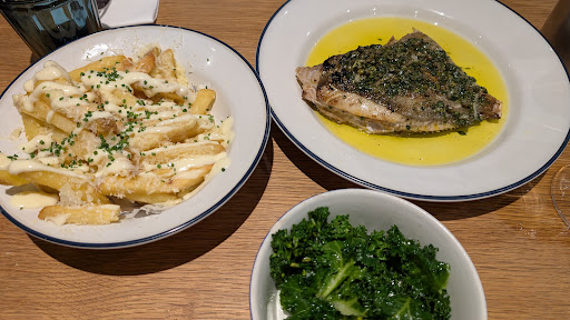 Read moreThe best meal out I've had in years. I visited Friday night with my wife and teenage daughter. We were soaked as it was chucking it down, but we were greeted with genuine warmth and shown a coat stand to hang up our wet items. For starters, we had the chowder, the mussels and the smoked haddock scotch egg. All were beautifully presented and packed with flavour. The chowder was rich, but not too rich, and came with a precisely shaped chunk of focaccia, lightly toasted on a griddle. The mussels were plump and perfectly cooked, and also came with focaccia. And the scotch egg was well balanced, with curried mayo and citrusy fennel. We all claimed ours was the best. For mains the girls both had fish and chips, which came as a long, straight very lightly battered fillet, laid on top of chips lined up like railway sleepers - very impactful. I fancied the fish finger tacos which is available in two sizes, choosing the bigger option game me two tacos. These were served folded on a W shaped thing to hold their shape. The soft taco outer provided a nice contrast to the crunch of the fish coating, while the avocado, pickles and sriracha mayo lifted the flavours into space. The restaurant is a big space on the first floor (there is a lift), but it doesn't feel empty or echoey. The tables are comfortably spaced. There's a shoal of fish snaking across the ceiling! There's a good buzz to the place and you can see and hear the chefs producing these incredible creations. A...