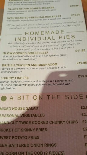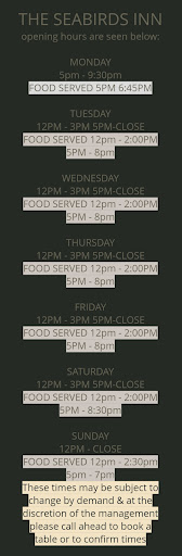 Read moreThis restaurant has gone down in my opinion.We have always enjoyed good food and a nice atmosphere over the years we have visited. We arrived and they couldn't find our booking someone had put it on another night but they managed to accommodate us. We Ordered our meal when starters arrived I ordered smoke salmon and prawns it arrived very basic smoke salmon prawns in top and some leaves and sauce in a paper medication pot at £ 7•95 just a little more time to make things look a little more appetising my husband's fish cakes again little over cooked in the deep fat fryer and again chilli sauce in paper med cups ramekins are not to expensive which would look better . My main course was just terrible I ordered Lamb mint suet pudding .My mashed potatoes were slapped on dry lumpy and obviously microwaved and left to go cold I didn't even think they were real but was assured they were. The Lamb Suet pudding was awful chewy and grizzly one of the worst meals I've ever been served. I complained and the lady who I think is the owner was nice she took off my main meal from the bill and explained it wasn't the chef but other people who work beneath him and of course yet again covid was also to blame.This I didn't expect because having eaten there over the years when we are in the area I feel it's lost its way staff wise. Its always been good food really well presented not slapped on a plate school dinner style.My husband's pie was very nice homemade chicken and mushroom pie but the veg rock hard cauliflower cabbage with cheese sauce very odd hard carrots and this was charged extra The prices are not cheap so you expect a good standard It really spoilt our night with such poor food. Come on Sea Birds get back to your standards of good food served ...