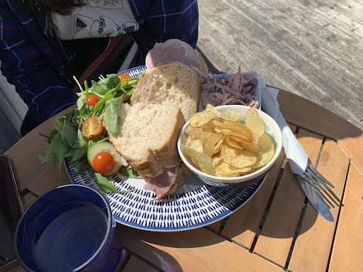Read moreParked in public car park above and walked down steps along the cliff with an epic sea view. The Seapot has 3 cute sheltered cabins with benches nestled inside and a wooden deck, jutting out off the rocks. Further seating options can be found here. Order upstairs at the little white hut (few more tables up there too). Cash preferable as signal for card machine patchy. Had a soft, tasty door stopper sandwich. Table next to us had fresh mussels which smelled and looked devine. Service was friendly and warm. Host set our expectations about wait time due to it being immensity busy on a rare hot sunny autumn day. We didn't mind, the captivating view kept us mesmerised as we sipped our chilled drinks and...