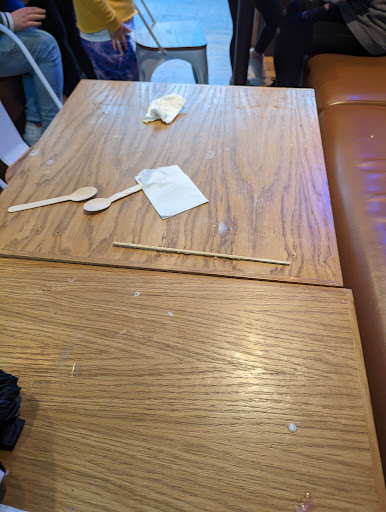 Read moreDisgusting ! The blonde slightly older lady who I believe was the manager was so miserable and rude when ordering and was so rude to her other team members shouting orders at them . I asked for a milkshake with chocolate sauce and instead received one with Nutella so luckily I didn’t have a nut allergy . When I told the young girl about this she said she was sorry but she didn’t know which one bottle of sauce was the Nutella one . The seating area was disgusting ! It was so so dirty the tables hadn’t been cleaned or wiped down and the team members were stood around talking instead of tidying up ! The other team member working looked like she was about to cry and the blonde manager lady was shouting orders about her telling her she hadn’t cleaned up properly . The whole time I was waiting for my order this lady was just sat on her laptop whilst the young staff were frantically trying to make the orders . I will not be returning here as the manger was unbelievably rude and treated the staff terribly ! It was very...