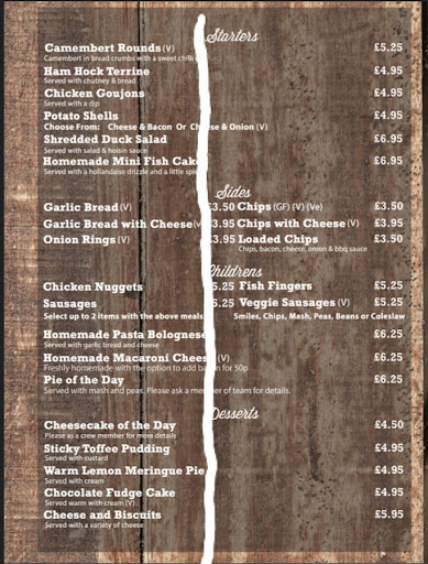 Read moreMixed thoughts on this pub. The only thing that kept it from 1 star was the Veg that came with the Sunday Roast, it was lovely. Pork was also good but beef was obviously cheap rubbish, tough, tasteless, inedible. The roast potatoes seemed like they'd been reheated from the night before. Mash was grey and gluey probably instant. The menu is laid out in a way that you read right to left (see menu picture, what do you think?) I was made out to be some kind of idiot!........it meaning I ordered 'pie of the day' only for it to be a children's meal.... either way the pie was really poor. 4 chunks of tough chicken in bisto in a dish with a frozen 'puff up in the oven' type chuck on the top topping. Again mash was grey, gluey and inedible like 70's smash. The real ale was nice and the pub itself has a good atmosphere. Waiting/bar staff are pretty efficient but let down by the food quality and chefing skills. Overall a waste of money I won't be going again. On the whole the pub is not suitable for disabled visitors, the toilets are either a long walk around or up and down stairs. Very disappointing...