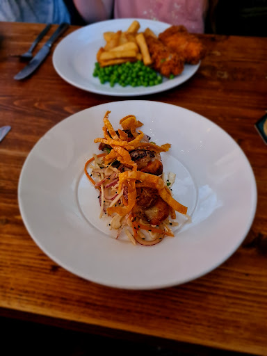 Ordered fish and chips and the chips were good but the fish was very greasy and made us feel queasy. To our surprise as not mentioned on the menu, the peas came with onion diced up small amongst it. Personally I don't feel the flavours go together but more importantly, my husband has an onion allergy and the pieces were so small they were difficult to retrieve and would have tainted the whole flavouring anyway. Portion sizes were very small too and over priced.