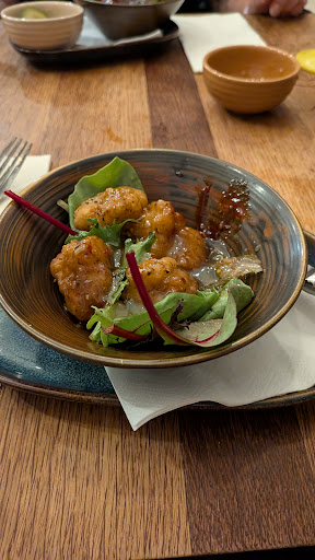 The seafood sizzler was very disappointing, only having salmon in, and a large quantity of veg. The server arrived to do the hospitality check after we had finished, so I asked the question about the seafood and what it should include. Unfortunately prawns and the other fish were missing from my "premade" portion (which lead me to believe it wasn't as fresh as I expected for the ÂŁ18 paid. I was offered a free drink to apologise.