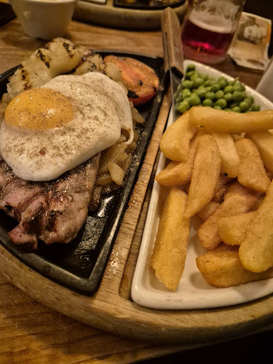 Ā Ā Ā Read moreFood was OK but the wait for it to come was a bit long.. Not expensive and for a Tuesday afternoon it was quite busy, so it's clearly popular but I just found a couple of the staff seemed to have an attitude. Firstly went to the bar to place our order and the guy just stood there and said nothing.. I said so can I order food.. "that's why I'm here" he responded. Unfortunately no mango skewers so I went back to the table so my husband could choose again.... Second time I got a small woman who was ok until she went to hand me my drink, double pink gin and lemonade. I asked for the glass to be topped up and with no ice originally so I said can I have it topped up with lemonade please.. It's got lemonade in it she told me.. Yes I know but can I have it topped up please. That costs extra - I'd already paid... I'll give it you this time but in future you'll need to pay for it!!!. And that's fine, if they charge extra for a centimetre extra of lemonade (which is what I got) , I'm happy to pay but I don't need passive aggressive attitude from anyone. I noticed her swing from super friendly with customers to quite sharp with others. I think locals got treated better by her and whilst taking my food order she stopped serving me twice once to rectify a drink for a regular that someone else was serving but she jumped in to say not to charge for a certain drink and again stopped serving me to ask a woman standing next to me if she was alright.. Can I have ice in my drink she said, of course, I'll get it now and that's exactly what she did. I was left twice standing at the bar while she dealt with things she didn't need to do so with emergency... it's just lucky for the bar that there was a lovely friendly guy serving who made conversation and was polite and professional...and filled my lemonade up properly on my second drink... Unfortunately we probably...