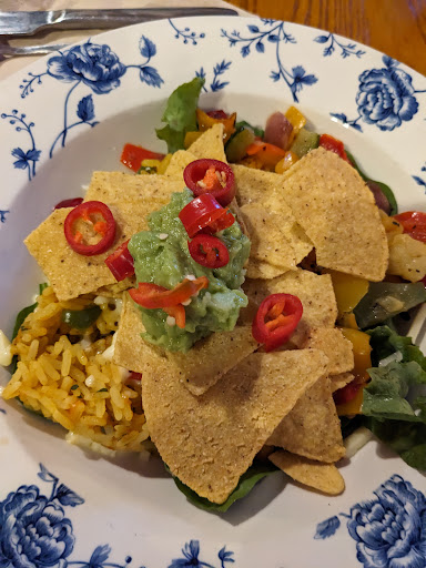 First visit to The Silk Mercer was a very insightful one. The rugby was on at the front of the pub so we decided to sit near the back, which is very much a huge children's area! You have been warned! Children seemed to be everywhere, running amok with no parents in control. The staff patiently served around all this chaos, including what seemed like some sort of wipeout course for them avoiding children's books, colouring pads and pencils thrown carelessly on the floor and children on scooters, on the stairs and high chairs randomly left in the middle of walk ways! So, this is where we sat... But thankfully, given Witherspoon's infamous quick service, our food and drinks arrived swiftly. The vegan burger was a little dry (but a lot of vegan food is to be fair), however the garlic based sauce made the burger. The burrito salad was really, really good avd and I would definitely recommend it! Would I visit again? Probably, but I will definitely avoid the hell which is...