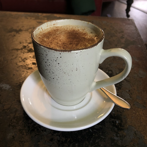 Gorgeous staff Tasty offerings Decor like your posh aunt Millicents' - the one who drank double gins for brunch and was mellow as hell alllll day, not uptight aunt Sue, she was no fun really. Well this place is just like it. Stays open til 10 Knows how to make good cake And better coffee Friendly and sweet staff who obviously do modelling on the side Large selection of local beers so he's happy too