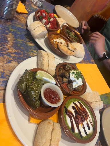 The food was incredible and they had lots of vegan options (one of the reasons we chose it). We ordered a vegan pizza #15, vegan nachos, vine leaves, patatas bravas, and King prawns - all of which were delicious and plenty filling for 2! The vine leaves were a big hit with my partner, and I loved the nachos + patatas bravas, though all of it was delicious.