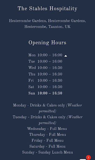 Second visit: No positives. Just rudeness. they donât publish their last service hours so today we arrived before close but it was after last service so we couldnât be served. the last service hours on the Hestercombe website are incorrect someone not in uniform, maybe a manager, informed us not to rely on that website as the restaurant is nothing to do with Hestercombe. How would we know that? This person said there was a phone. Yes indeed. I had tried to call and to check their social media the FB âaboutâ page had no hours on at all. Their website says they close at 4.30pm but not that you have to be there by 4pm. I said we had tried to call but no one answered, to which there was a shrug like gesture and âWeâve been busyâ.