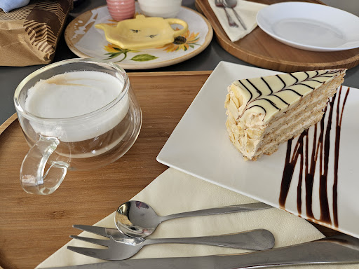 Read moreCute little café, we visited at lunch and had two slices of cake each, we also asked for a Cappuccino and a still water, we were not charged for the water so she just gave us tap water which was fine but the transaction was a little awkward. The cakes were very delicious, we had honey and cherry cakes, the Cappuccino was also very nice, it was a fair price, the atmosphere isn't great, its a very small cafe and you have to talk in hushed tones to avoid over powering the whole cafe, unfortunately not everyone understands this so one table was very loud. We would return to try more authentic Ukrainian food but would likely ask...