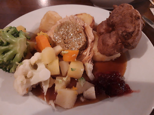 We went as "walk-ins" for Sunday lunch, bought drinks and ordered food, all at the bar. We were then told that we could sit wherever we liked as it really wasn't very busy, so we made our way to a nicely placed table and sat down. We'd barely lifted our glasses to our mouths when a waitress arrived and told us that actually, that table was going to be set up later for other customers, and we needed to move! We looked around and spotted an alternative table (but not ideal, as all the interior was so drab and murky, it was difficult to find anywhere that wasn't uncomfortably dark and dismal!) However once again we settled into our chairs....and very nearly got a sip of our drinks, when again, we were asked to move because "this table also was going to be set up later for expected customers. At this point, I felt extremely irritated and asked rather too loudly as to where we COULD sit then? The reply was that we could sit anywhere else, but not those two places! I would have loved to have sat out in the conservatory where it was open, airy and sunny, but all the tables in there were for seating larger parties, not 2's or 4's! SO!!!! We ended up in a mardy little corner feeling very annoyed that we weren't helped with our seating in the first place, to save all the messing about and embarrassment so far! After not too long, our plates arrived bearing chosen meat (turkey) yorkshires and mash/roasties. The waiter then went away and didn't exactly hurry back with the vegetables as we sat waiting to start! (all the time another waiter was wandering idly about, picking up bits off the floor, why he couldn't have helped to serve our meal up in order that we could have had it all delivered to our table in one go, I have no idea!!!) When the veggies did come, the waiter then asked if we would like any sauces, I chose cranberry and away he went again to get it (a miserly little pot at that) and so we still waited to begin eating! To he honest, even with everything on our plates, there were in fact, empty spaces showing through! My first bite was a lump of nasty gristle which I quickly spat out onto the side of my plate. Now, because the gravy had already been put over the meat on arrival, it meant that the vegetables were particularly dry and incidentally quite tasteless and the roast potatoes were so tired and leathery, that I had to leave them anyway! One good thing was that the plates were nice and hot, so they did maintan the temperature of our food despite all the waiting about. The meal was very mediocre, and not helped at all by the terrible choice of " too loud to be called background" music...songs full of angst and suffering, forcing themselves upon us throughout the entire time we were in there! I must say that we did enjoy the blackcurrant cheescake and banana split, so that was something, I suppose! Needless to say after that experience, we will NOT be going back to The Sutton...