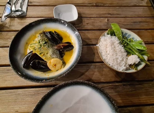 Popped in for a bite to eat at lunchtime as someone had recommended this place. We walked in on a Wednesday lunchtime in April, and it was packed with everyone eating. It was a lovely day (probably the only one in April), and we have a dog, so we went out into the beer garden. There were only a few of us out there, but even so, there is a vibe that just makes you feel comfortable and welcome. I ordered 3 small plates, including the dirty fries, (which you must try) and my husband, the fish baguette. Service was with a smile, and the food was presented lovely. Because I ordered the large crevettes and the koren wings, I was given both a bowl for the shells and a finger bowl to clean my fingers after the sticky wings, plus a lemon wet wipe. Every mouthful was a delight. It was the perfect amount for the snack we were looking for, and there was nothing we could fault. The crevettes were indeed large and cooked perfectly, the sticky wings were coated in lots of the beautiful sweet Korean sauce and the dirty fries were really moreish and I don't normally do chips.The fish baguette had deliciously fresh white hake, which was lightly battered and sat upon homemade tartar sauce accompanied by a portion of side salad. Since returning home, we have both commented that lunch at The Three Horseshoes was the best food during our stay in Dorset and we highly recommend that if you are anywhere near this place, it is well worth a little detour. When we hopefully return to Dorset next year, we will definitely be...