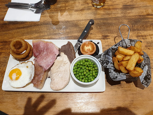Read moreReally nice atmosphere, freshly prepared and cooked food not like some chains with prepared reheated portions. Very pleasant staff provided excellent service. Prices are good, not cheap like Wetherspoons but in a totally different league. If you want cheap beer, cheap food and scruffy drunks staggering around then go to Wetherspoons, if you want a nice comfortable place, fairly priced where you can relax with partner or family or group of friends this place comes highly recommended. Pictures of full parmo approx. 14" plate, and full chilli beef with half rice half chips approx 12" plate. Good portions.... Really tasty and chips first class 👍 multiple TV screens showing sports and news, visible...