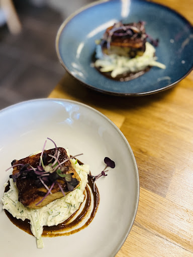 During our visit, we experienced an exciting 6-course tasting menu paired perfectly with a variety of schnapps. At ÂŁ45pp with drinks we thought this was great value. The first course featured herring on rye bread prepared two ways, one topped with a curried mayo that was simply perfect. If youâve been hesitant about trying herring, Viking Chefâs preparation might just change your mind!
