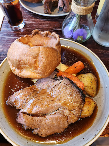Decoration of the pub is nice. Itâs a big building with warm colours and nice furniture. Wood burners with cured logs add a winters feel to the place. The lighting is a bit odd in the ceiling, pointing onto walls exposing ugly wires and brackets because itâs too bright to point down. And despite being in the middle of the pub there was a subtle icy draft keeping me a couple of degrees out of the comfort zone. Also the music was on just a little too loud too - I wasnât shouting over it but it wasnât ambient either. There were some old grease stains on the wall by our table. Finally the external building could do with a bit better lighting - drove past it and was unclear where to park and enter.