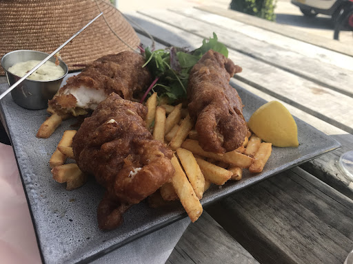 This fish restaurant is at a dream location with views overlooking Falmouth Harbour and situated in the beautiful, somewhat idyllic village of Flushing. We arrived at lunchtime, midweek on an absolutely beautiful day and we had no trouble parking or getting a table, inside or out. The menu was a little limited but I could have happily had any of the options on the menu. My wife and I both went for the monkfish fish and chips at £22, served with tartar sauce and salad leaves. The portions were generous and mine was absolutely delicious. There was an slight issue with my wife's, and another diner's, over their fish being slightly over cooked but this was satisfactorily dealt with by the very professional and efficient staff and everybody was happy. I took at look at dishes served to other diners and they looked fabulous too. Would we go there again? Absolutely and probably for their...