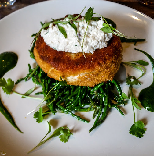 The menu offered a reasonable range (pizzas are also available) and the choices are not bog standard pub food. For instance, Cod cake on bed of samphire with crab mayonnaise; an absolutely delicious combination but the Christmas meal failed to impress. Prices and portion sizes are in line with this sort of food-based pub. One personal benefit: the beer glass was a solid glass tankard -...