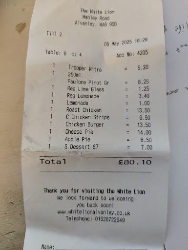 We've been to the White Lion many times over the last 30 years and had some amazing meals here, sadly this was not one of them. First off there was no staff about when we walked in so we stood for a while thenwandered to look for a table when suddenly someone appeared and told us to sit anywhere rather abruptly. There only being 4 other people in at the time, it wasn't hard to find somewhere. This lack of customers should have warned us. Our order was taken but took an inordinately long time to come out, with the pub being so empty this was surprising. Four of us had the roast, the lamb was good but the vegetables, broccoli, cauliflower and cabbage , no carrots at all which is very odd, were disappointing as 3 of us don't like any of them, so we were stuck with lamb, very hard roast potatoes, oddly glutinous gravy, a Yorkshire pud and some invisible mash, so not at all the glorious roast dinner it should have been . We also had the the scampi, it was deemed 'only OK' so not great. The Macaroni and Cheese was so dry my Mum could only manage half of it and I don't think she enjoyed any of it. The garlic bread that came with it was nice though. The puddings, Cherry pie - flat, very little filling, also the same said of the apple pie. Two of us had waffles but don't like chocolate sauce so asked for toffee but got told no so just had a weirdly damp, flat waffle with some ice cream plonked on the top. The Wet Nelly didn't have a lot of 'Nelly' (raisins ) in it and was drowning in custard to the point it covered the top of it ,along it waterlogged and not just wet! We came away very disappointed in the whole experience and...