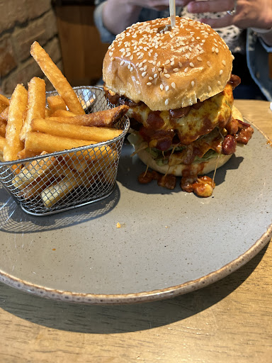 Mains we ordered burgers - these are proper burgers and I mean 2 large beef patties (homemade), decent sized buns and with each comes a twist. My wife had a Mexican variant and I had the truffle version. Quite possibly one of the best burgers we’ve eaten.