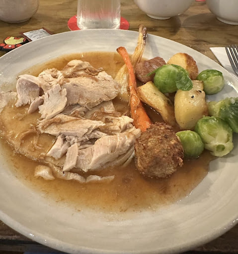 The table preparation left a lot to be desired and other than a cracker looked no different from any other day. I could go into the details for each course in turn, which was mixed at best, but overall it wouldnât be positive feedback. The main course warrants more of a mention. The picture is an example of what everyone was presented with. People can make their own mind up how theyâd feel about being presented with a plate like this on Christmas Day. The turkey was ok but the rest was served in small portions. A single piece of carrot & parsnip, a few sprouts, 3 small roast potatoes and a single pig in blanket and a single small stuffing ball. All combined the vegetables and âtrimmingsâ barely filled half the plate and to top it all off the food was served lukewarm on barely warm plates and the presentation left a lot to be desired.The picture shows a plate swimming in (watery) gravy while another person barely got any at all. Nobody in our group enjoyed their main course which ultimately is what the Christmas meal is all about. At the end nobody came round to offer the mince pies and coffee that was included on the menu but by then weâd all had enough and just wanted to leave. To round off our experience when we came to pay we were overcharged by ÂŁ40 for drinks that we hadnât had. I only realised this after paying because I asked for a till receipt. This was corrected when I brought it to their attention but it shouldnât have happened anyway when people had to give their table number to order drinks from the bar.