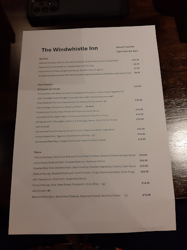 June 2023 review Good good, good service, pleasant staff. Evidence of significant investment outdoors. This is now a nice pub and restaurant. April 2023 review. Under new ownership for a couple of months I think. We've not rushed to the Windwhistle because of persistent disappointment over 4yrs. However... Nice greeting, decent menu with various specials. Speciality evenings ....steak / curry etc. Live music / events. We hadn't booked a table but needed table for 4. Lots of customers around the place in the bar and at tables. They were busy, which was unusual with such a stubborn reputation of customer dissatisfaction. Only two of us had arrived but got table for 4. Drinks order taken at the table within few minutes of sitting. Delayed food order till other guests arrived. Soon have in and ordered, 5 minutes later they arrived. Not a problem, their drinks order and food order taken straight away. We waited 15 minutes for our meal and pleasantly surprised when the others got their food too. Then two more friends arrived so we needed a bigger table....another drinks and food order taken immediately. 15 mins later their food arrived. All with no tut tutting, no tight lips, just a business like and friendly process aimed at satisfying our needs. We ordered the ubiquitous haddock, chips and peas which was so tasty and fresh. Curry, bangers & mash and a prawn dish and everyone was pleased with their meal. Couple of glasses of Sauvignon Blanc, beer, tonic n lime.