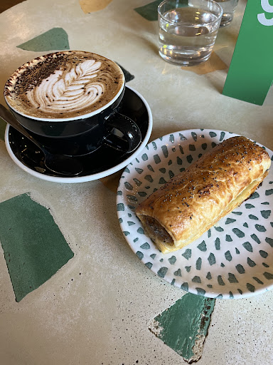 Love this place. Really pleasant staff (although kitchen staff get the grump even with reasonable, justified complaints!), an amazing array of unique tray bakes, cakes and cookies although £2.50 for a cookie is very steep! Great coffees and generally a nice menu offering a range of lovely toasties, different flavoured sausgae rolls and the like.