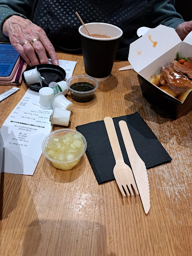 Read moreDon’t. Simply don’t. Go anywhere but here. The decor is absolutely dire. The tables are way below even roadside cafe standard. And the food is seriously expensive for what you actually get. Slapped in a cardboard box, with balsa wood “cutlery” that won’t cut through anything and roast potatoes that are simply inedible - hard, burnt and way, way overcooked. They won’t/don’t even provide tap water - which I believe all restaurants are obliged to do - so you are eating a stodgy mostly inedible meal with nothing to wash it down. The beef was fairly decent and the Yorkshire pudding was at least edible, but I have nothing good to say about anything else. My wife left most of her lunch - simply couldn’t cut through the dry turkey, couldn’t eat the dry and overcooked roast potatoes and thought the veg offered were just awful. We made a BIG, BIG mistake eating here - our fault given a past experience with exactly the same franchise in York - and we can only urge you not to even try it. It is no way worth either your time or money. It totally spoilt our day and there is no way we would...