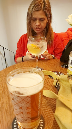 My spouse and I visited on a friend’s recommendation, and my cider and his beer were tasty.This was post dinner, and they weren’t very busy. I have a medical condition that requires me to elevate my leg after strenuous activity, which a day in York definitely qualified.We sat in a corner, and there was no other table with customers on my side. There was a stool that I put under my knee (with accompanying thigh to knee brace worn on the outside of my clothing). No part of my shoes were on the stool. Unfortunately, my spouse decided that his 70- yr.- old+ legs were tired, and he put his feet up on the other side on another stool, also with no shoes making contact. After we were halfway through our drinks, the bartender came over to our table and told us to put our feet off the furniture. We apologized about my husband’s, about which I agree that he shouldn’t have done. However, it seems to me that accommodation should have been made for my medical condition. I’m hoping that the bartender will be more empathetic in the future, (maybe karma in a few years) although we won’t...