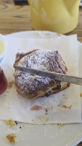 The scones were lovely and warm when they arrived, with that soft fluffy texture on the inside and a slight crisp on the outside. Exactly how you want them. The cream was thick and rich, proper top tier stuff, not the cheap airy kind. The jam was fruity and smooth and when you put it all together on the warm scone it just melted in your mouth. Absolute delight. They even dust the plate with a bit of powdered sugar which made it look beautiful and felt like a proper treat.