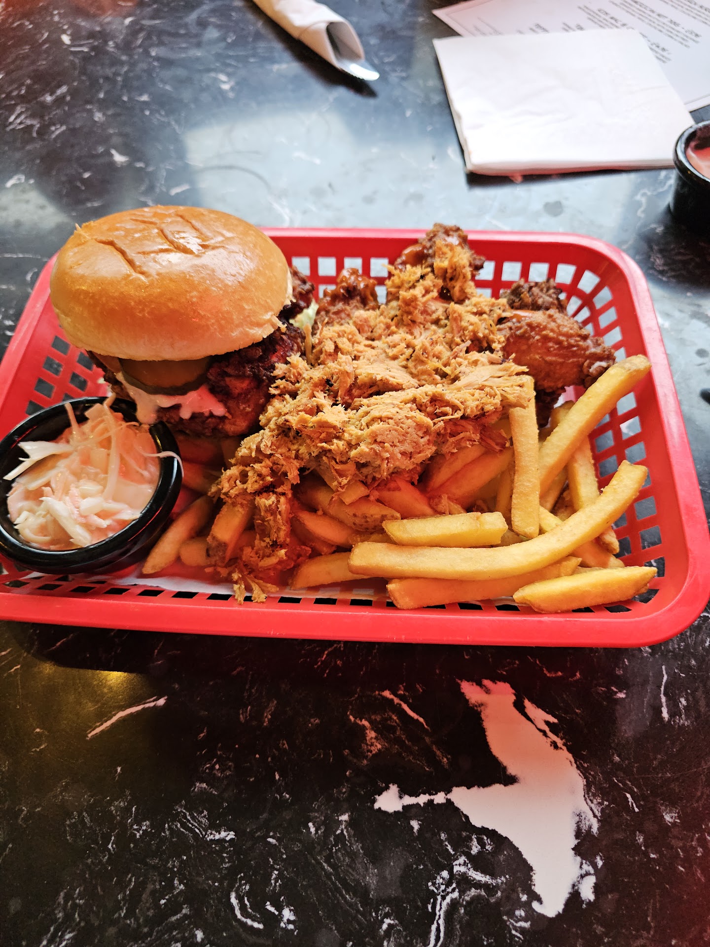 To begin with, I hope you like BBQ sauce because it’s literally on everything. It NEEDS to be noted that the crepes and waffles you see on the dessert menu feature throughout the main menu.