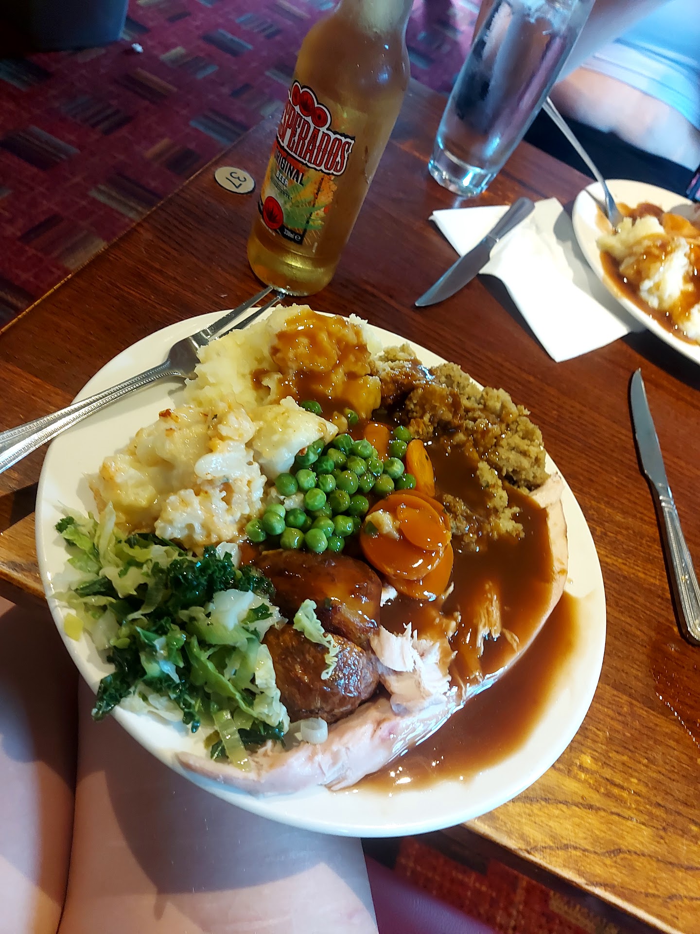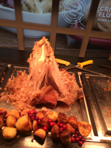 Read moreAfter being seated with 2 of my guests and ordering beverages I inspected the turkey crown which was bare to the bone on one side and close to bare and dry on the remaining. I asked a waitress if she would please request a fresh turkey and was told that they would not do so until the remaining portions had been served. My guests and I waited and I observed that only one part portion was served to another guest. Waiting for 15 minutes our server was asked for the manager and following a discussion between the manager and the original waitress the manager was asked politely if she would request a fresh turkey. The answer was I had already been told this would not happen until the remaining portions had been served. The manager was asked to accompany me to view the turkey and informed me she had no need to do so. The manager was informed that my party would leave and when asked stated that she had no objections to my photographing the turkey. The beverage check was requested and settled. To add further insult, my guest was stopped on the way out and questioned as to who was paying for the beverages. The enclosed photograph clearly shows the condition of the product. Simply put, disgusting quality of food, failure to resolve a simple customer service enquiry, lack of managerial skills and...